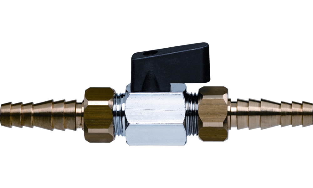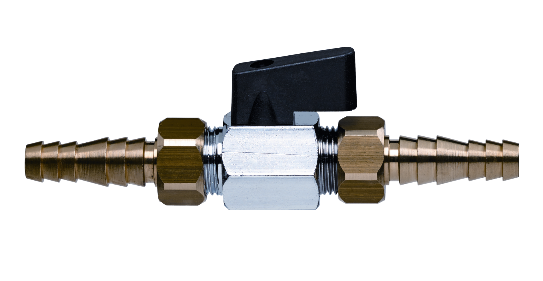 UniQuick-MS-Kugelhahn mit Tüllen für 10-12 mm Schlauch.