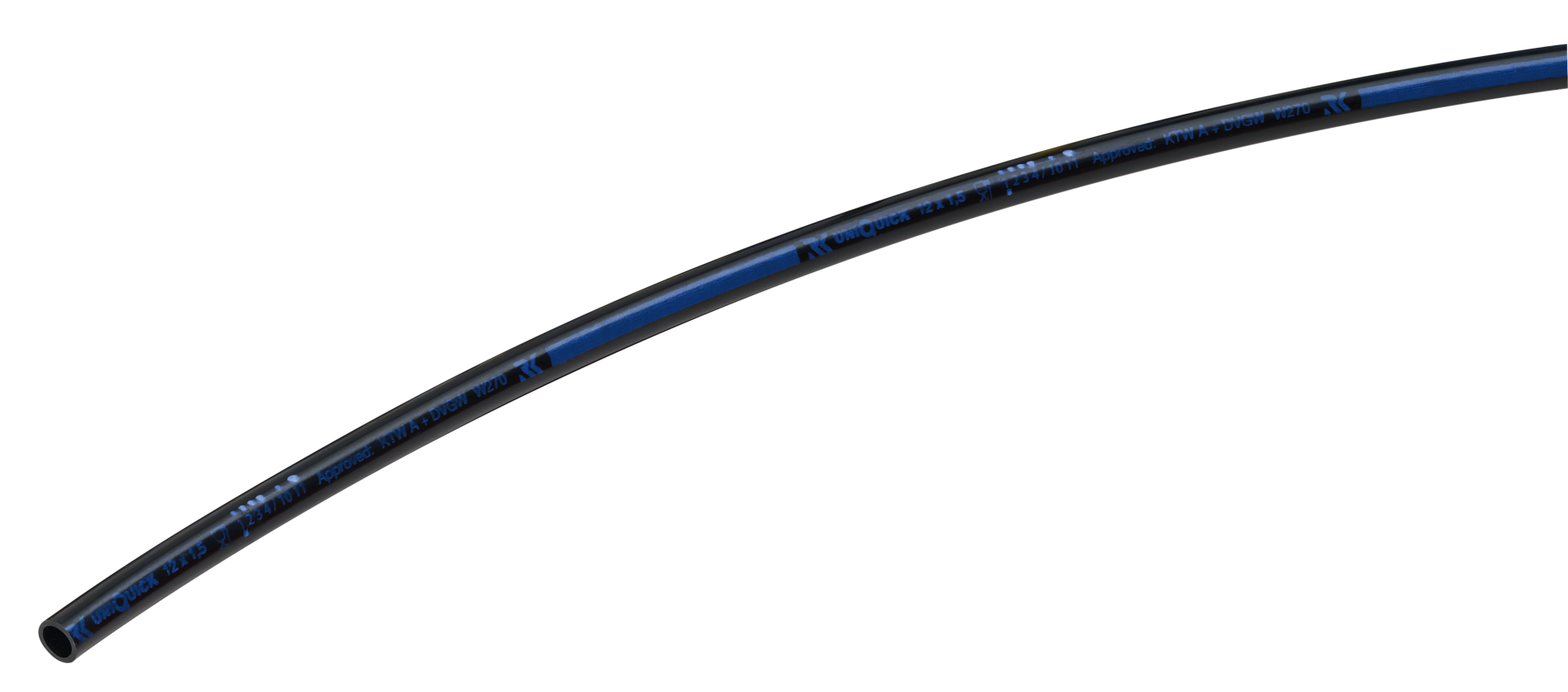 UniQuick-Rohrsystem. Das steckbare UniQuick-Rohrsystem hat viele Vorteile gegenüber herkömmlichen Schlauchsystemen: das einzigartige UniQuick-Rohr besteht aus einem besonderen Material, das selbst die neuesten und strengsten Trinkwasser- und Lebensmittelrichtlinien in Deutschland und Europa erfüllt und dies nicht nur bei Temperaturen bis 60° C, sondern sogar bis 90° C. Die Montage erfolgt durch einfaches Einstecken des Rohres in die UniQuick-Fittings, ohne Schrauben, Kleben oder Schweißen. Die Steckverbindung ist bei Bedarf jederzeit lösbar und wieder verwendbar und garantiert 100-prozentige Dichtheit bis zu einem Druck von 6 bar bei 80° C. Außerdem ist es frostunempfindlich. Rohrdurchmesser 12 mm.