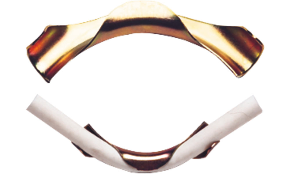 Winkelhalterung aus Messing. Ideal für enge Radien. Mit zwei Löchern zur einfachen Befestigung. Für Schläuche und Rohre bis 16 mm Außen-ø.