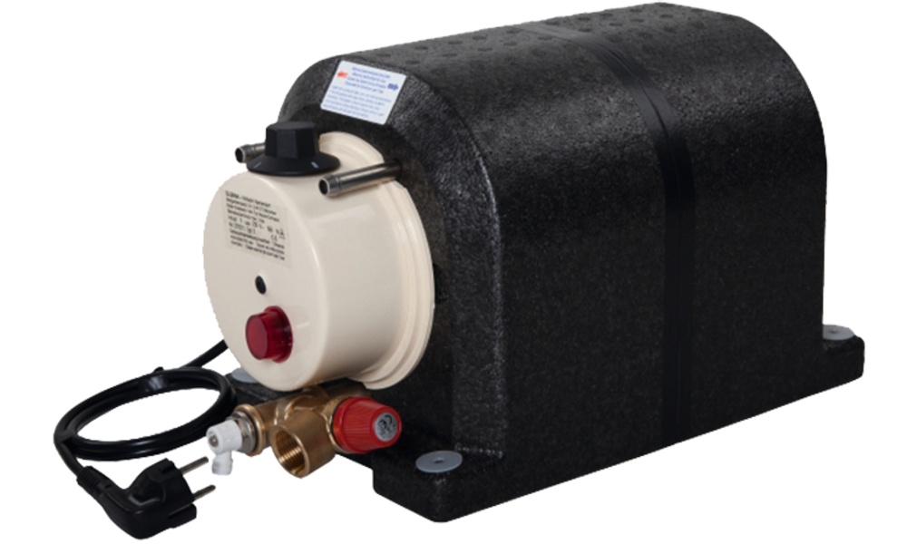 ELGENA Boiler Nautic-Compact. Mit thermostatischer Regelung von +30 °C bis +85 °C, Überhitzungsschutz und Frostwächter. Vollisolierte Ausführung, Warmwasser wird bis zu 48 Stunden gespeichert. Kessel aus hochwertigem Edelstahl V4A gefertigt. Anschluss 230 V/660 W (3 A). Mit Sicherheits- und Wasserablaufventil. Für Tauch- und Druckpumpen geeignet.