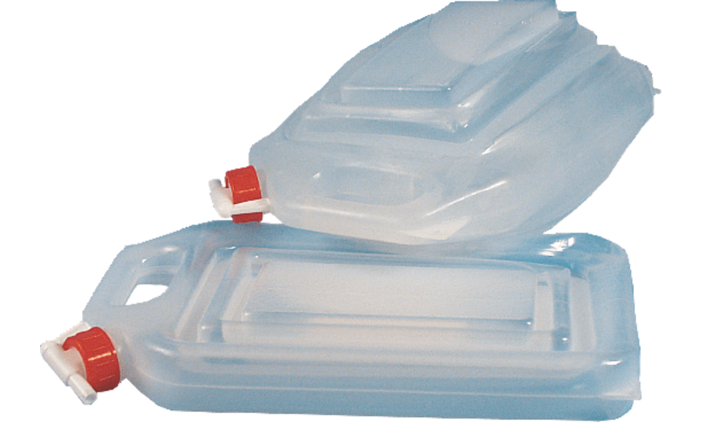 Faltkanister FLUNDER.nur 5 cm flach wie eine Flunder, mit Auslaufhahn.