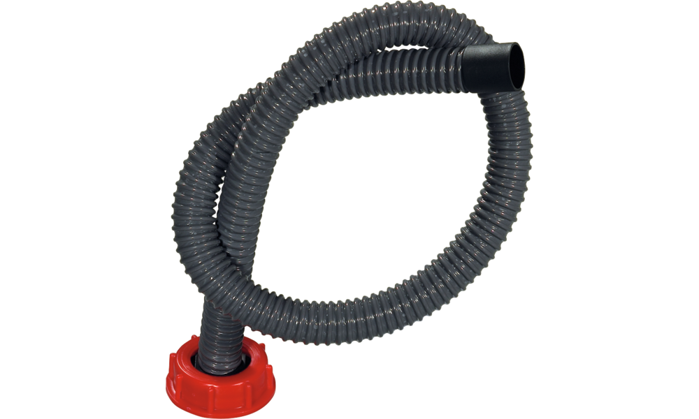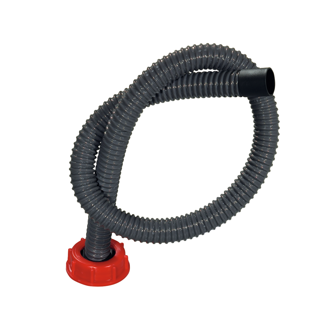 Schlauch kann selbst auf beliebige Länge gekürzt werden. Mit Schraubring zur einfachen Befestigung auf dem Kanister.