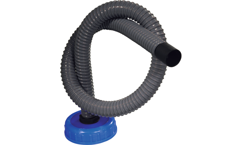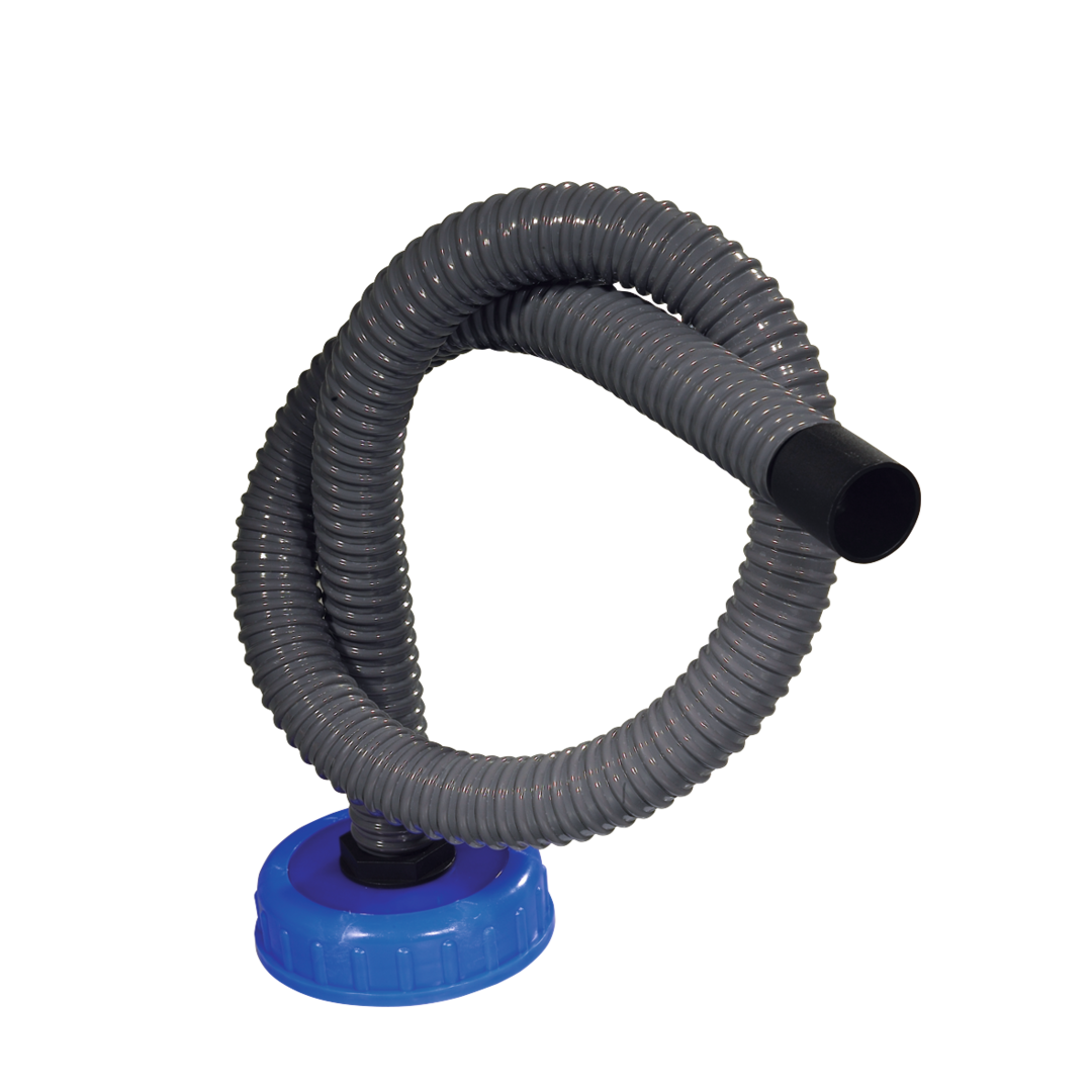 Schlauch kann selbst auf beliebige Länge gekürzt werden. Mit Schraubring zur einfachen Befestigung auf dem Kanister.