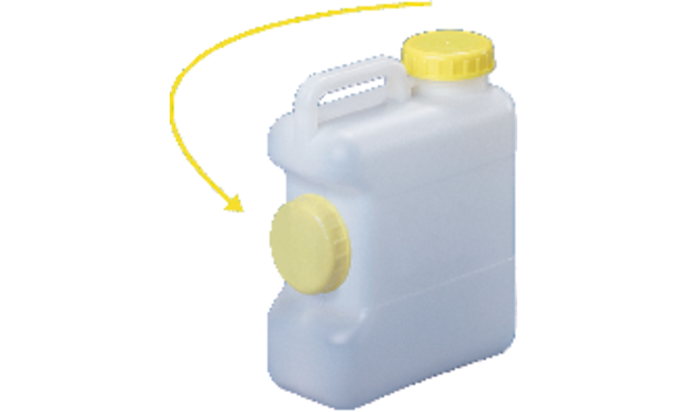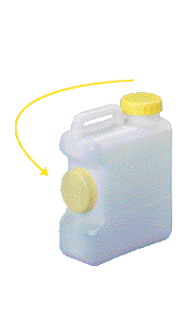 Weithals-Kanister, DIN 96. Mit integriertem Tragegriff, ¾"-Gewinde ungeöffnet und Deckeldepot, damit der Deckel beim Nachfüllen nicht verloren geht.