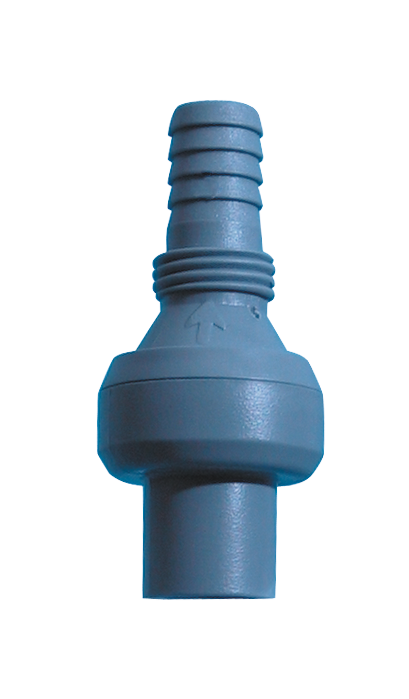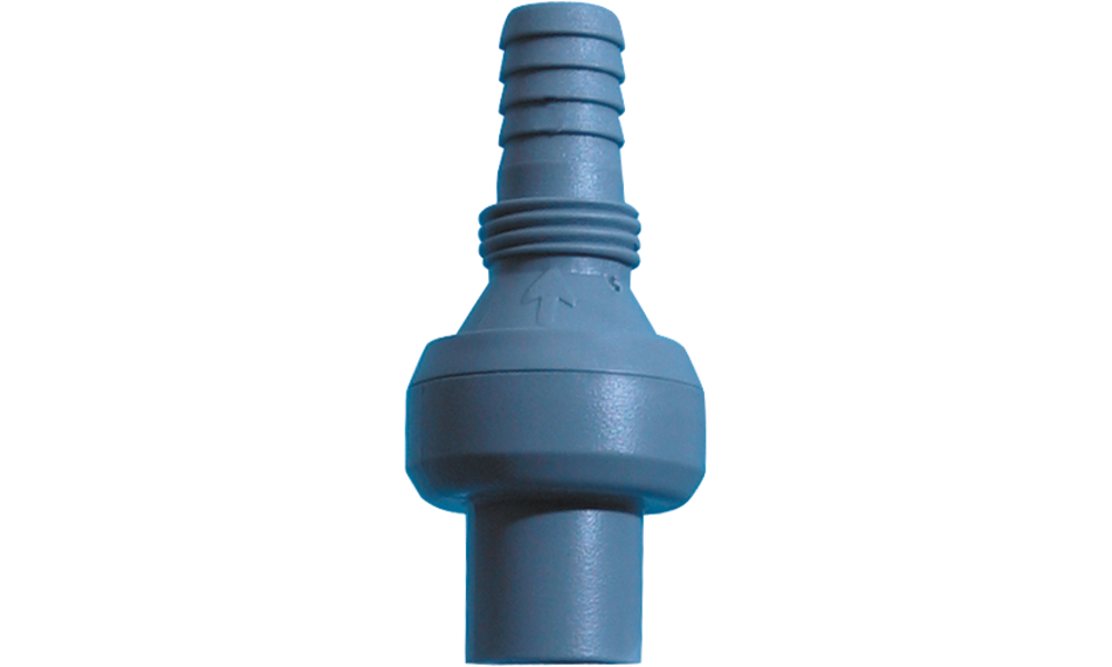 Rückschlagventil für Tauchpumpen. Mit Entlüftung. Für Schläuche mit 10 mm Innen-ø. Höhe 60 mm, ø max. 27 mm.