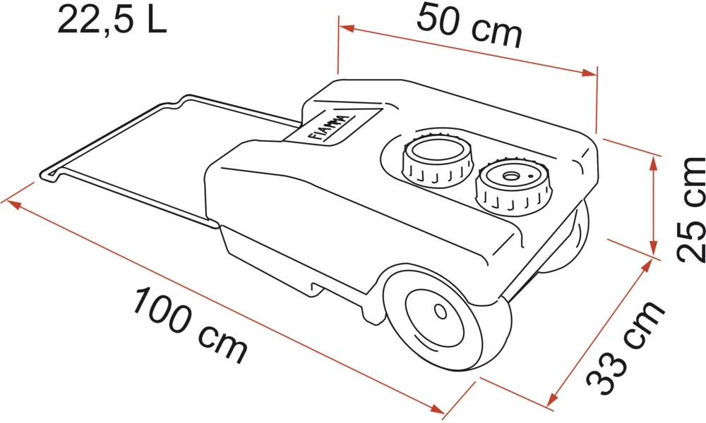 Länge 50 cm Breite / Tiefe 33 cm Höhe 25 cm Gewicht 2,4 kg Inhalt 22,5 l