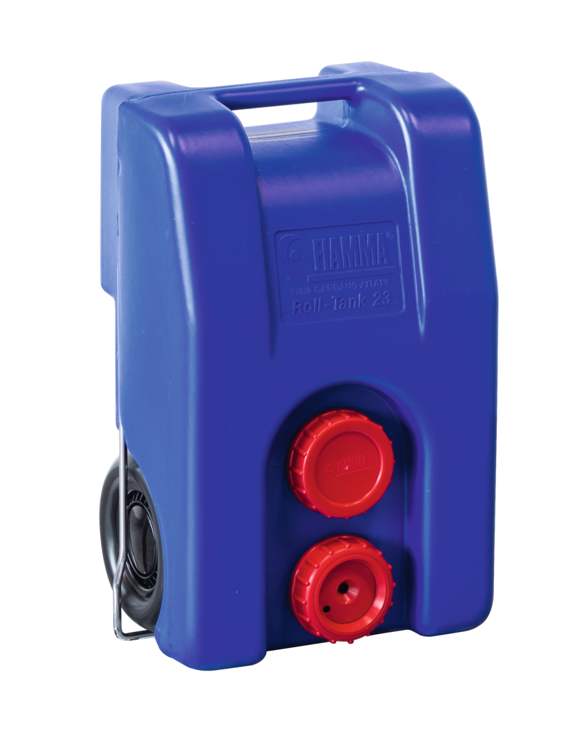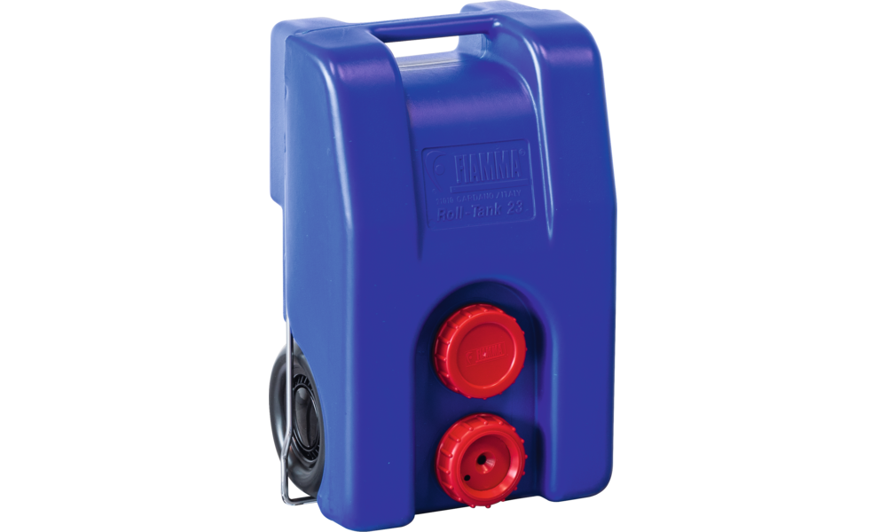 Praktischer, tragbarer Frischwassertank mit bequemen Drehverschluss für die Entleerung.