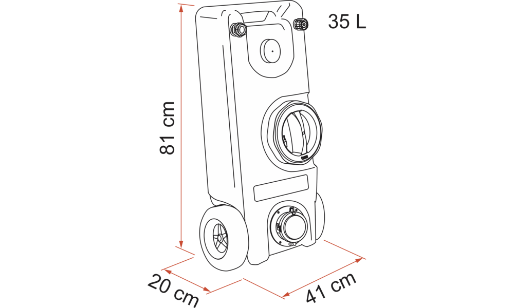 40 Liter fassender Abwassertank mit integriertem Füllstandsanzeiger und Luftloch für ein einfaches Entleeren.