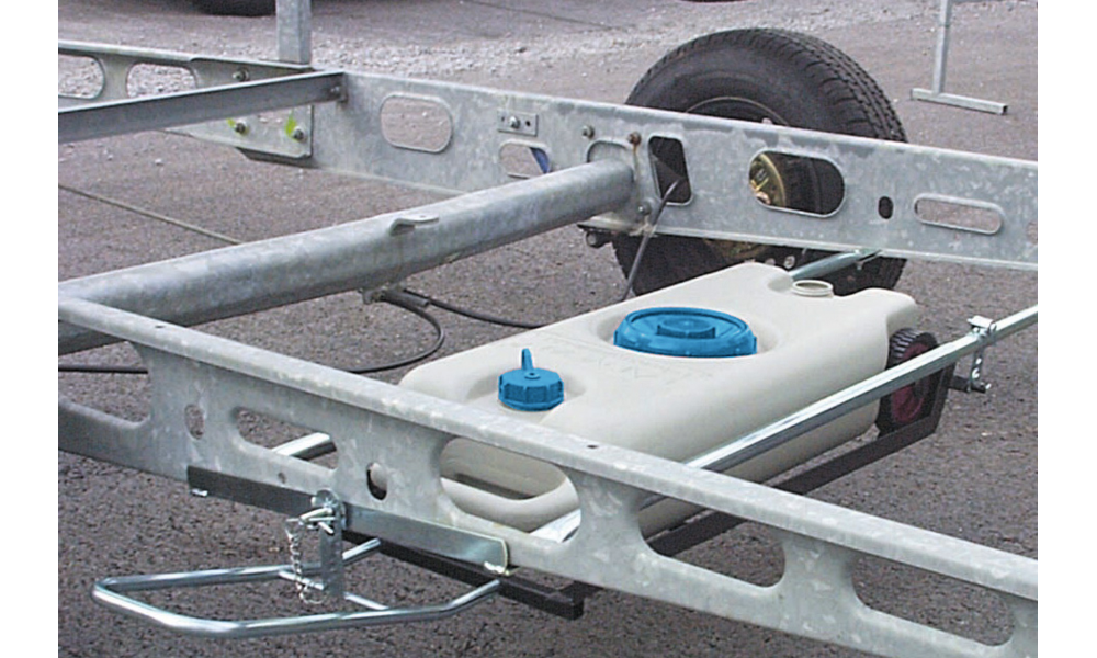 Unterbodenhalterung AQUA MOBIL Pulverbeschichteter Stahlrahmen mit galvanisch verzinkten, teleskopierbaren Rohren. Mit Montageanleitung, ohne Bohren und Schweißen am Fahrgestell zu montieren.