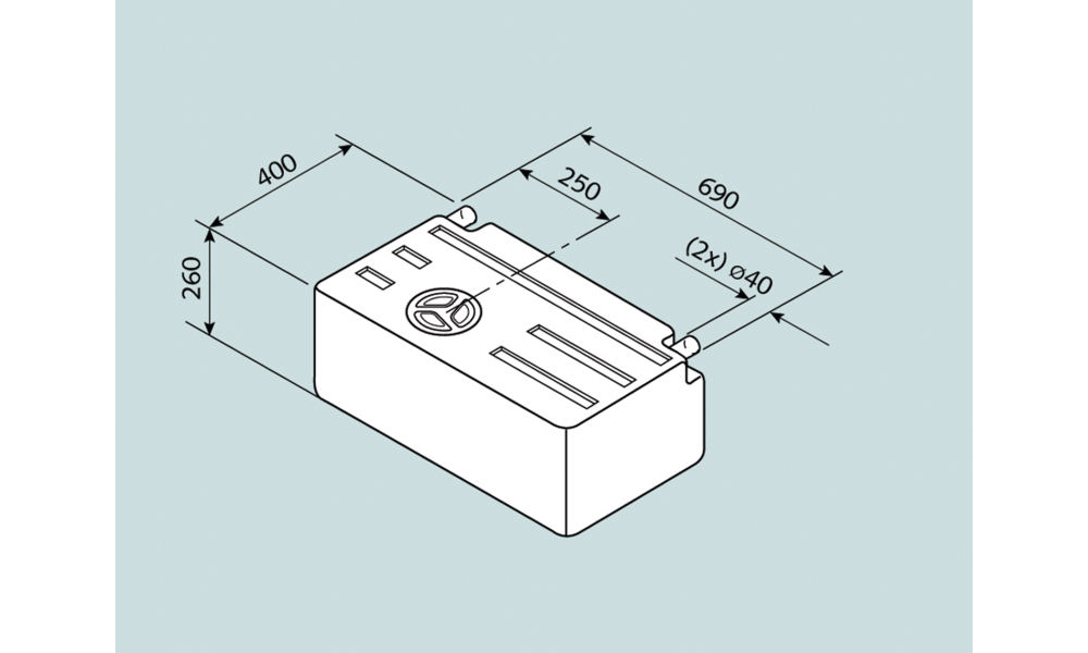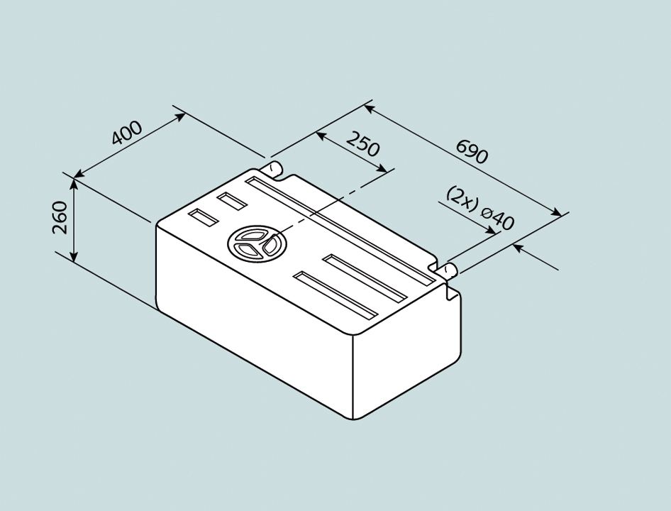 Länge 40 cm Breite / Tiefe 69 cm Höhe 26 cm Gewicht 4,6 kg Inhalt 63 l