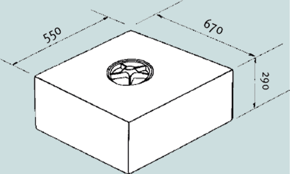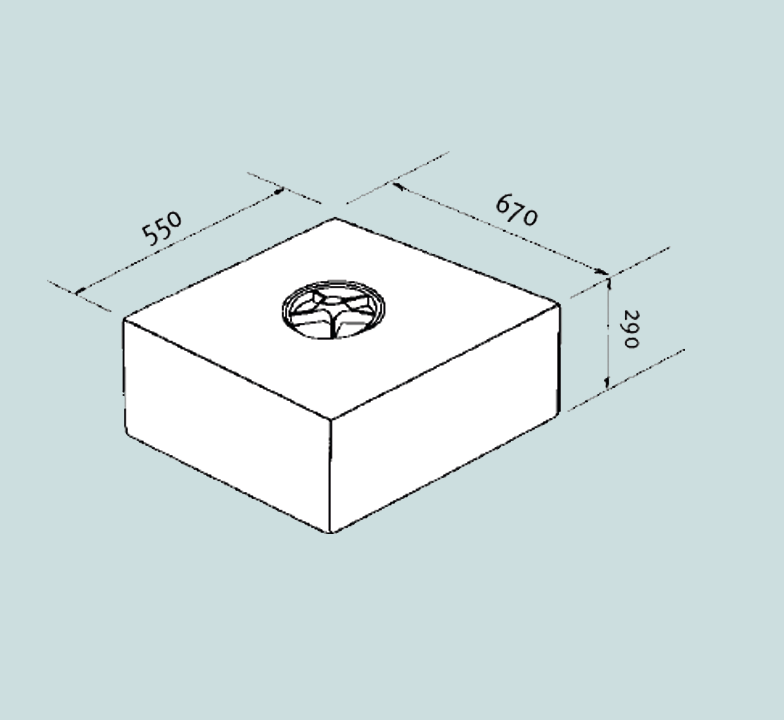 Länge 67 cm Breite / Tiefe 55 cm Höhe 29 cm Gewicht 6,5 kg Inhalt 100 l