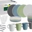 36-teiliges Set bestehend aus 4 Esstellern ø 25 cm, 4 Desserttellern ø 20 cm, 4 Suppentellern ø 20 cm, 4 Henkelbechern 30 cl, 4 Gläsern 20 cl und 16-teiligem Besteckset.