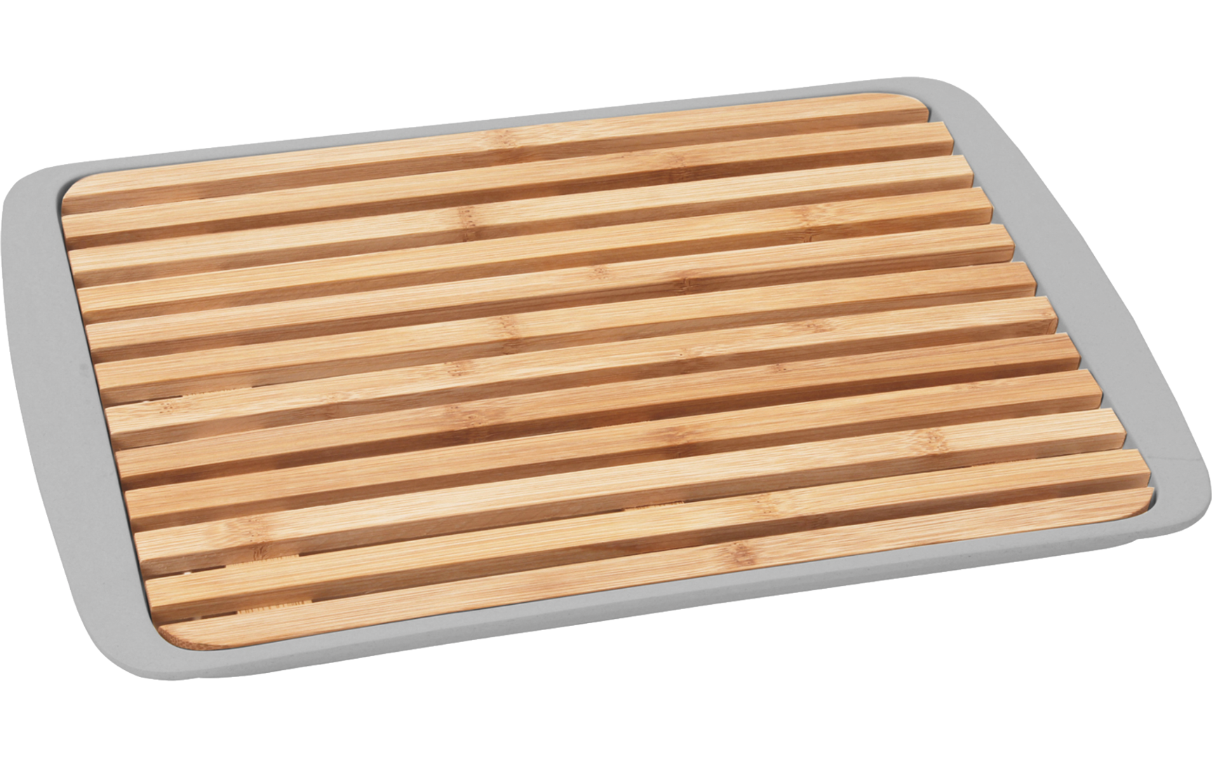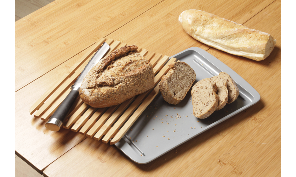 Brotscheidebrett. Mit Auffangschale für Brotkrümel. Holzbrett herausnehmbar.
