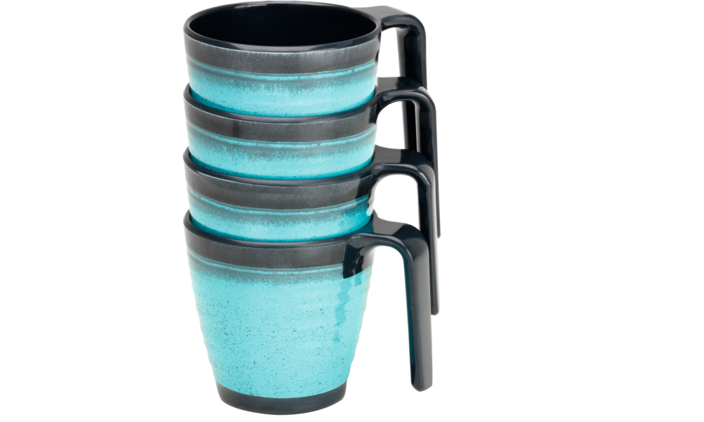 Henkelbecher-Set Premium GRANITE-AQUA. 4-teiliges Set bestehend aus 4 Henkelbechern.