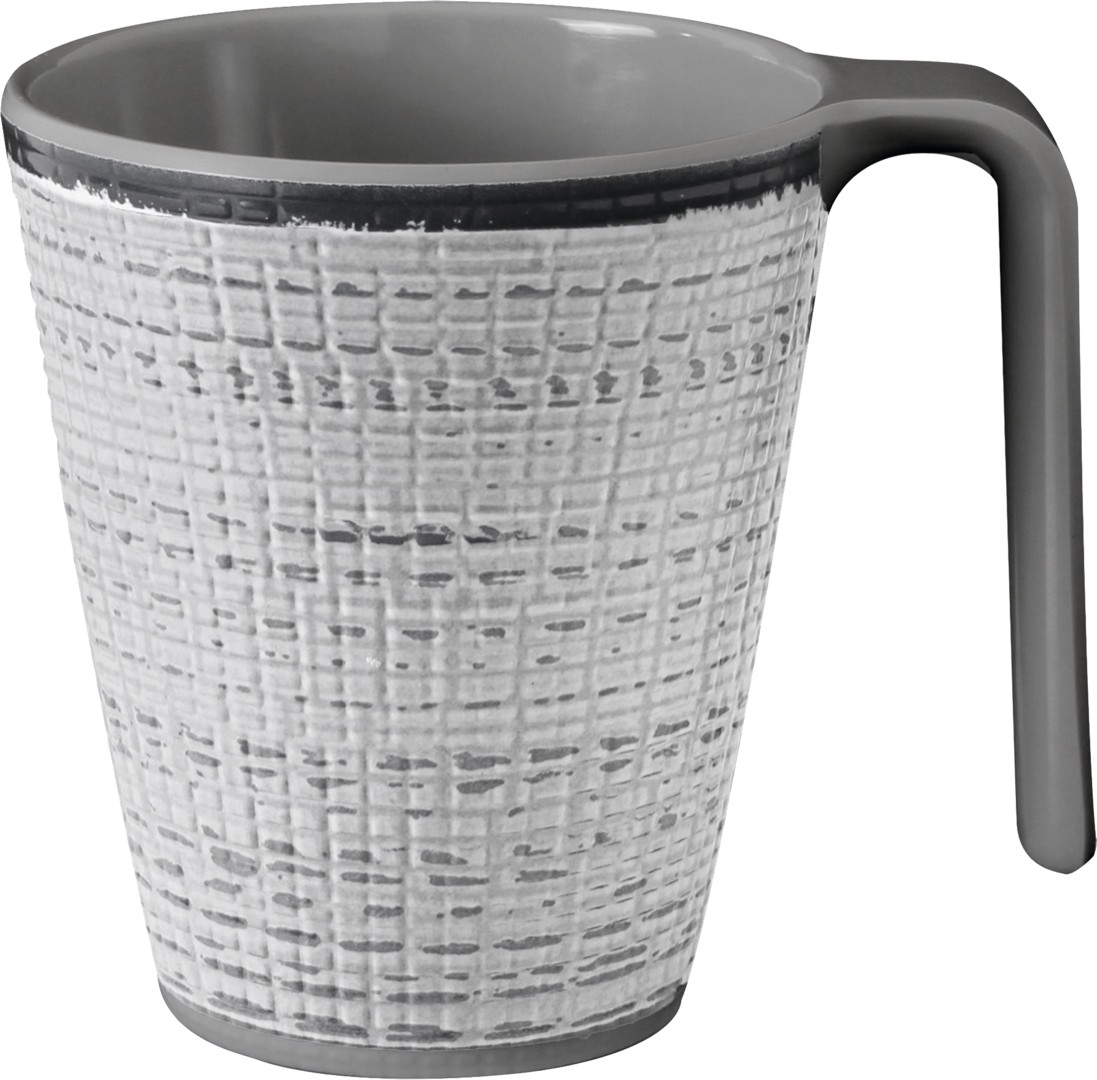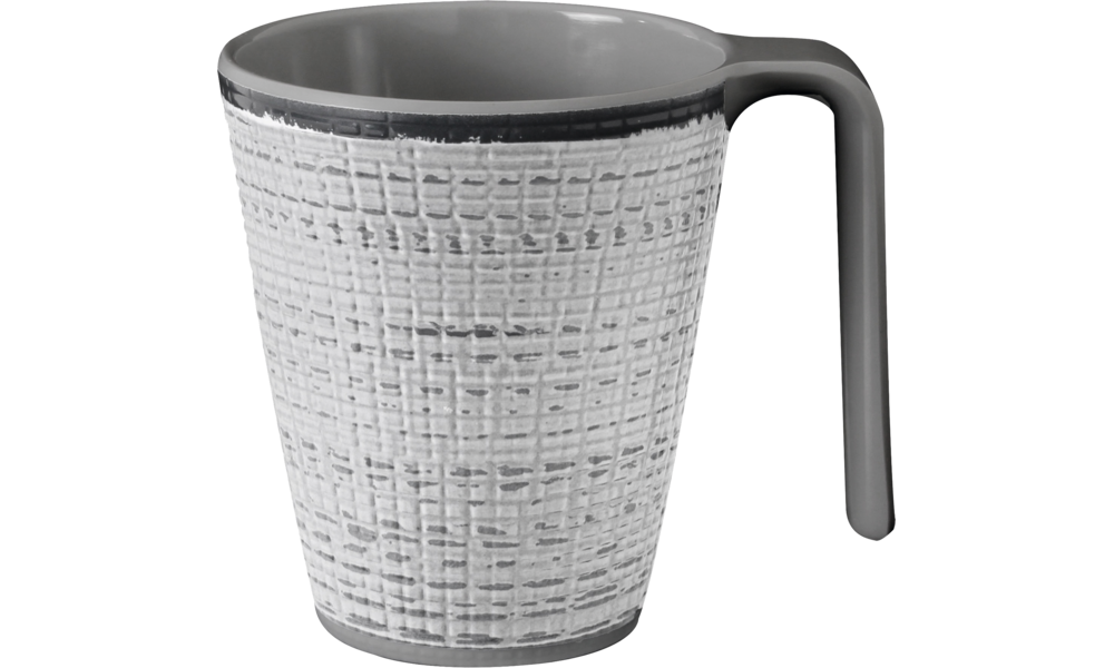 Geschirrserie TIVOLI. Geschirr aus hochwertigem Melamin. Alle Teile dieser Serie sind mit einer integrierten Anti-Rutsch-Dichtung ausgestattet. Spülmaschinengeeignet, bruchunempfindlich und lebensmittelecht. Nicht mikrowellengeeignet! Henkelbecher 30 cl