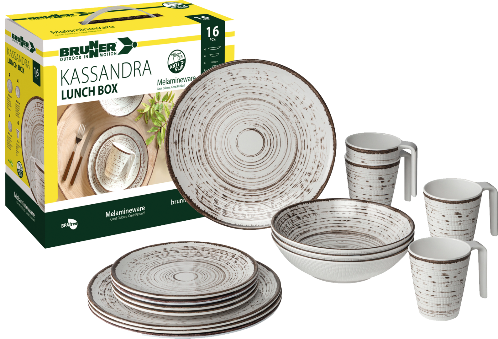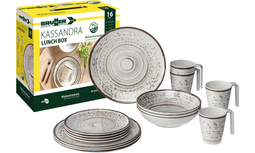 16-teiliges Set bestehend aus 4 Esstellern ø 25 cm, 4 Suppentellern ø 21 cm, 4 Desserttellern ø 20 cm und 4 Henkelbechern 0,3 l.