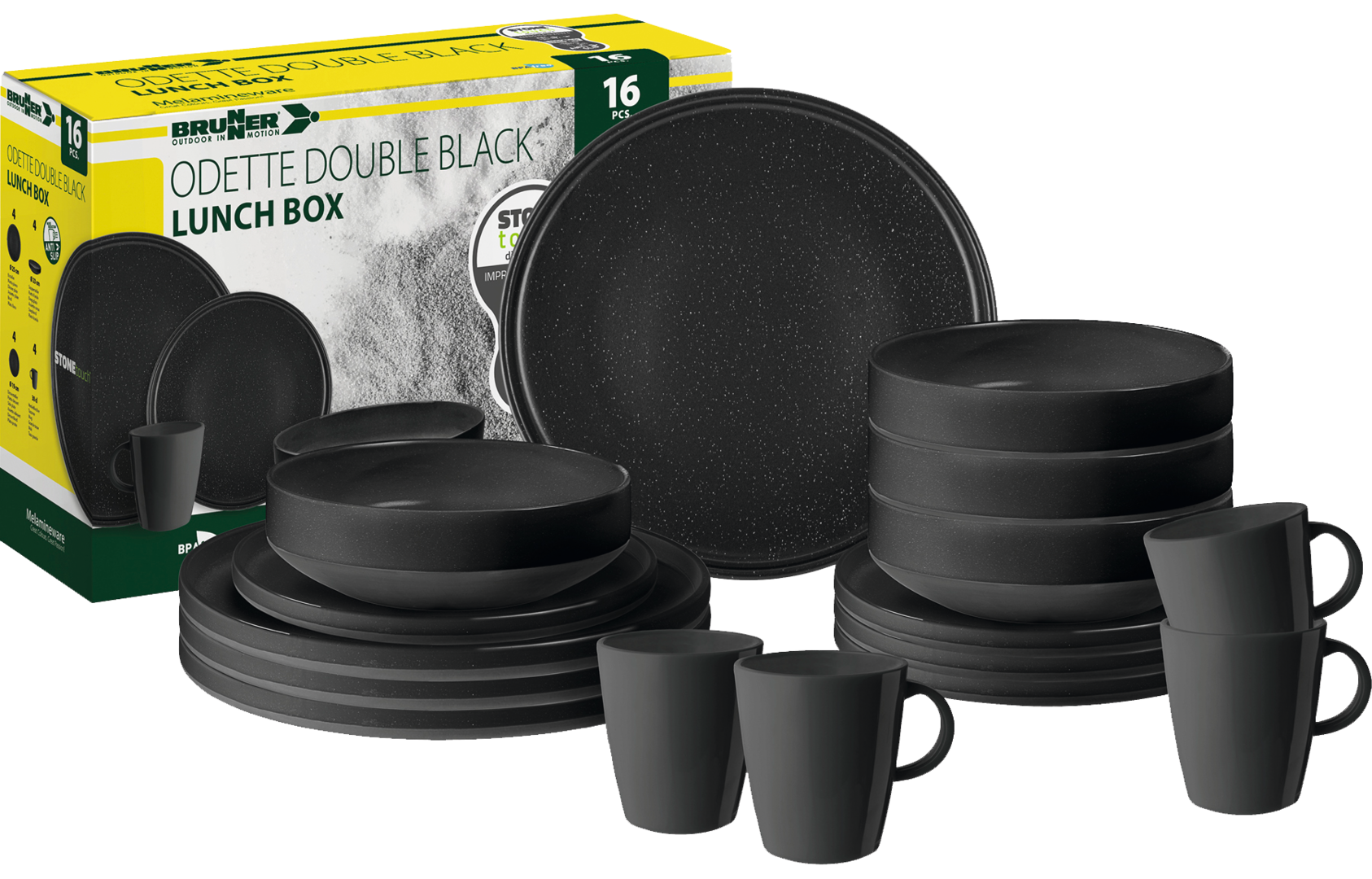 16-teiliges Set bestehend aus 4 Esstellern ø 25 cm, 4 Suppentellern ø 23 cm, 4 Desserttellern ø 19 cm und 4 Henkelbechern 30 cl.