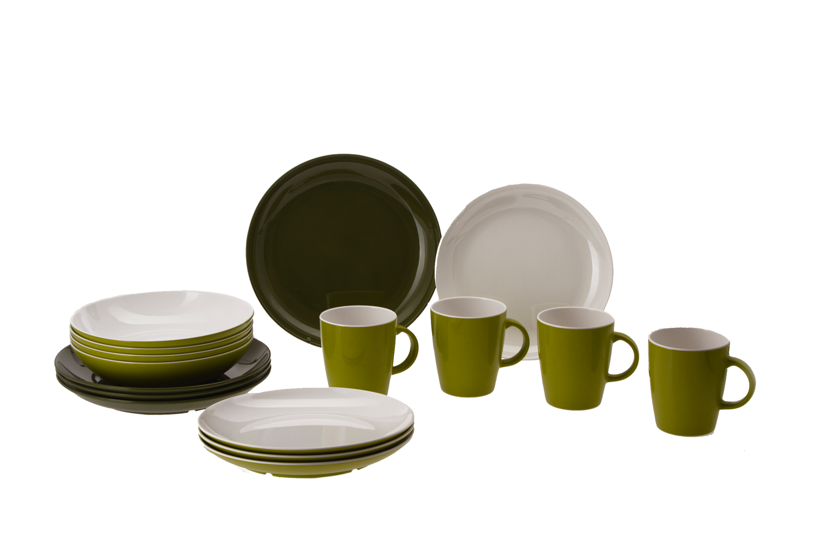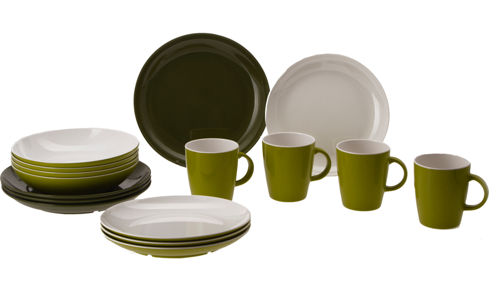 Melamin-Set Classic Line FOREST. 16-teiliges Set für 4 Personen. Bestehend aus 4 Esstellern, 4 Suppentellern, 4 Desserttellern und 4 Henkelbechern. Nur solange Vorrat reicht!