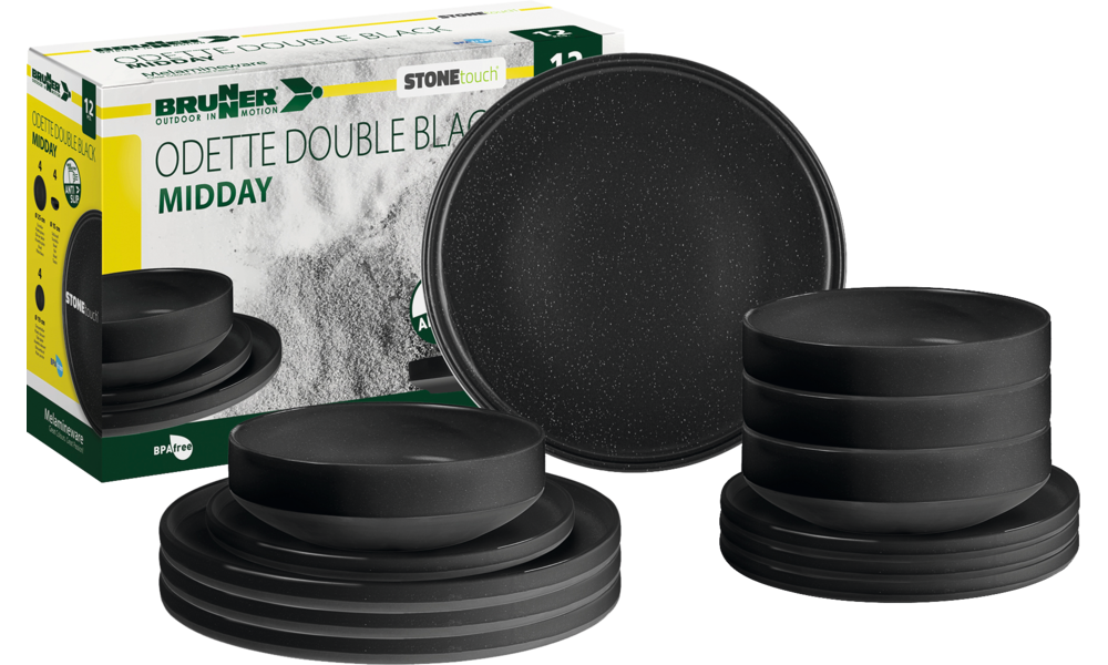 12-teiliges Set bestehend aus 4 Esstellern ø 25 cm, 4 Desserttellern ø 19 cm und 4 Schüsseln ø 15 cm.