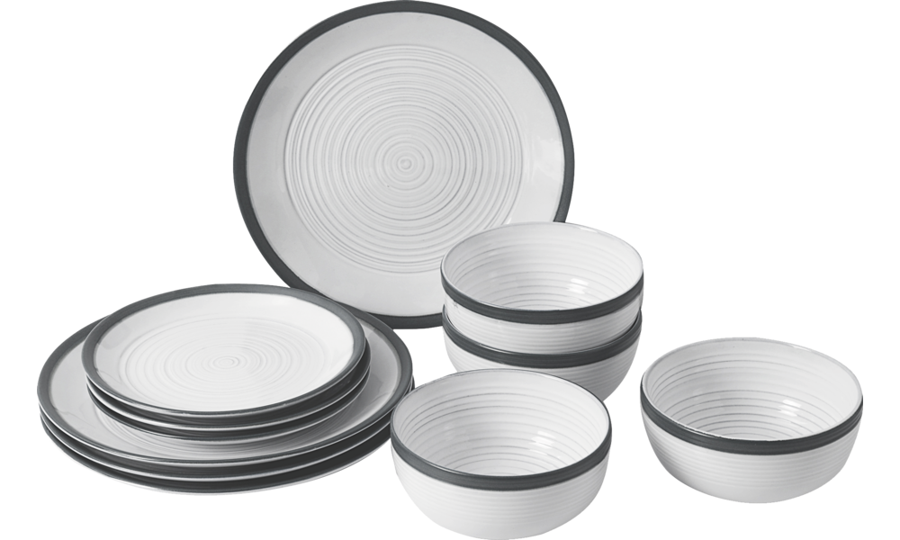Midday Set BELLAGIO. 12-teiliges Set bestehend aus 4 Schüsseln ø 15 cm, 4 Esstellern ø 26 cm und 4 Desserttellern ø 21 cm.