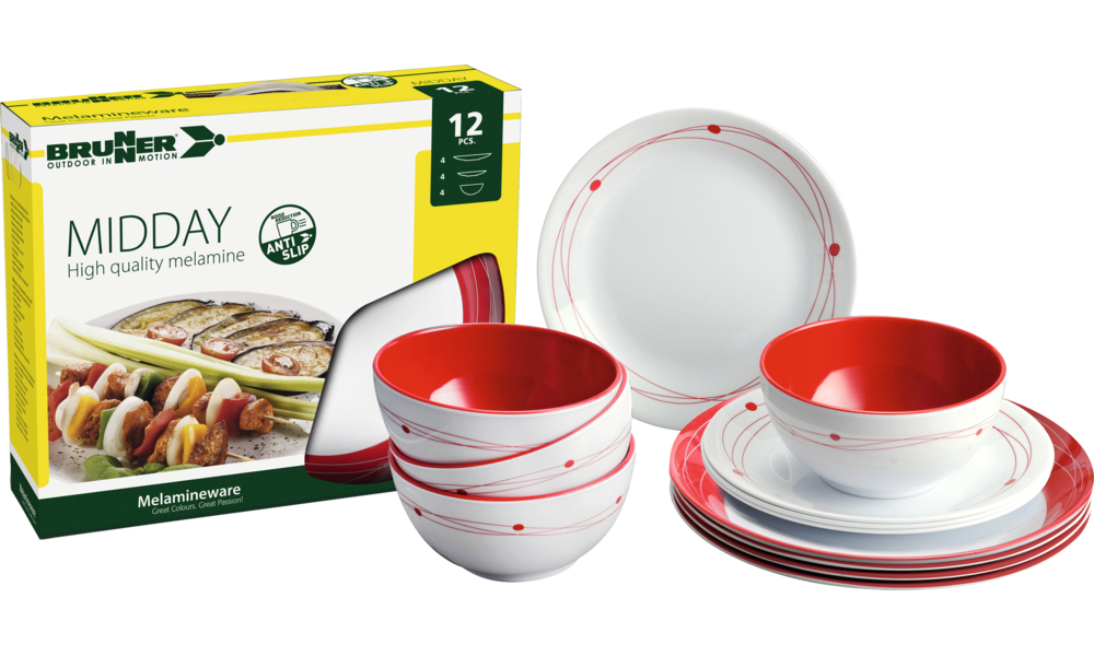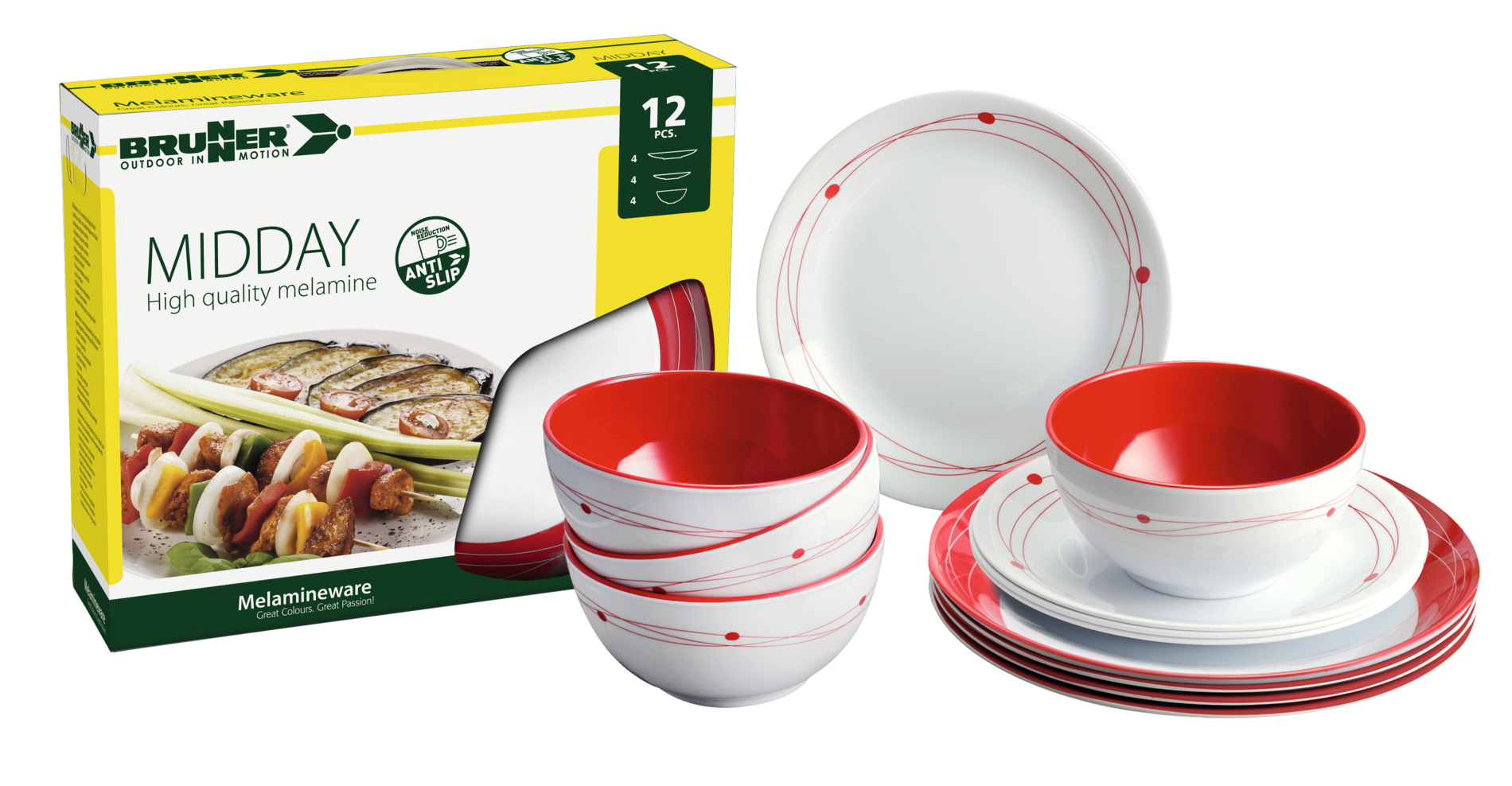 Midday-Set COSMIC. 12-teiliges Geschirrset aus hochwertigem Melamin.