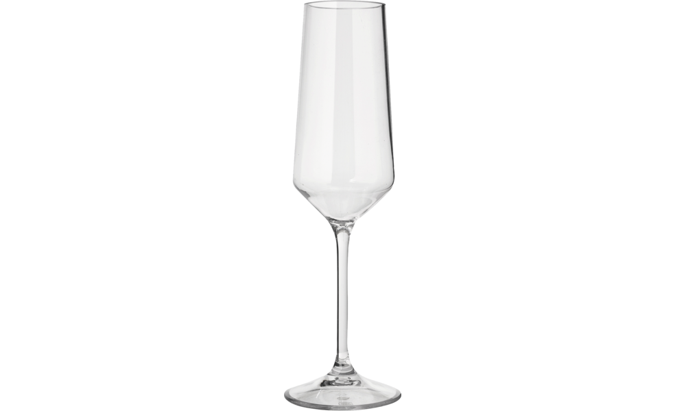Gläserserie RISERVA. Aus Tritan-Kunststoff. Tritan-Kunststoff ist eine gleichwertige Alternative zum weit verbreiteten Polycarbonat. Perfekt geeignet für die Herstellung von unzerbrechlichen Kunststoff-Trinkgläsern. Tritan-Produkte sind klar, langlebig, sicher und enthalten kein BPA, BPS oder andere Bisphenole. Tritan hat eine wesentlich höhere Bruchsicherheit als andere Kunststoffe oder Glas und verbeult nicht. Es zeichnet sich durch eine glasartige Optik und Haptik aus und wird nach dem Waschen nicht trüb oder verschwommen. Tritan ist leichter als Glas und sicher für Kinder. Es ist spülmaschinengeeignet (max. 85 °C), lebensmittelecht und gefriertruhengeeignet. Jeweils als 2er Set. Proseccoglas 25 cl