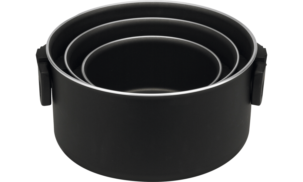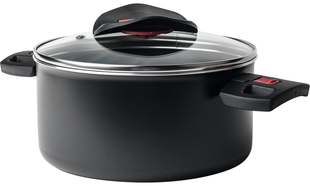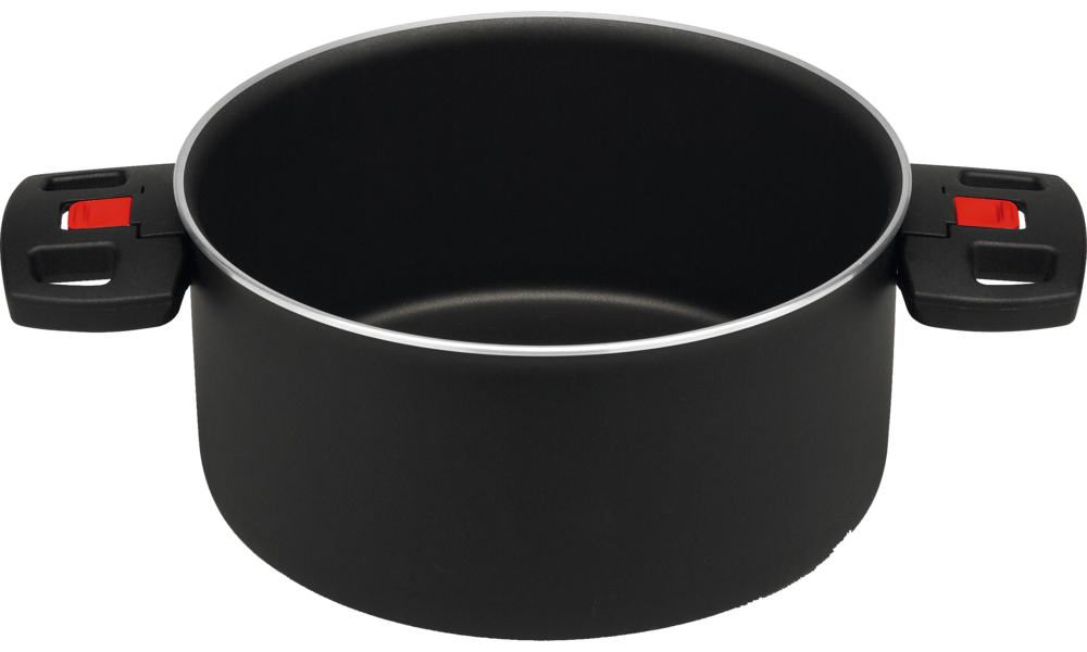 Eine revolutionäre Lösung, die Platz in der Küche spart! Abklappbare Griffe, ineinander stapelbares Kochgeschirr. Die neue Produktlinie Click & Cook von Ballarini ist vielseitig einsetzbar und platzsparend. Die Kunststoffgriffe können mit einer einfachen Bewegung eingeklappt und ausgeklappt werden. So haben Sie immer einen Platz im Küchen-schrank, Kühlschrank oder in der Geschirrspülmaschine. Da die Töpfe stapelbar sind, benötigen Sie also nur einen Stauraum von 12 cm in der Höhe. Die patentierte Arretie-rungsvorrichtung der Griffe erlaubt sicherste Handhabung während des Kochens. Beschichtung innen: 3-fach keramisch verstärkte Antihaftversiegelung KERAVIS. Beschich-tung außen: Pulverbeschichtet.