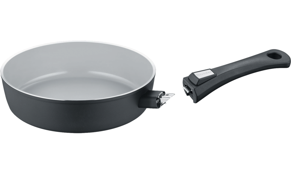 Die Pfannen aus geschmiedetem Aluminium in Gussoptik sind mit der neuen b.nature Quarzversiegelung beschichtet.