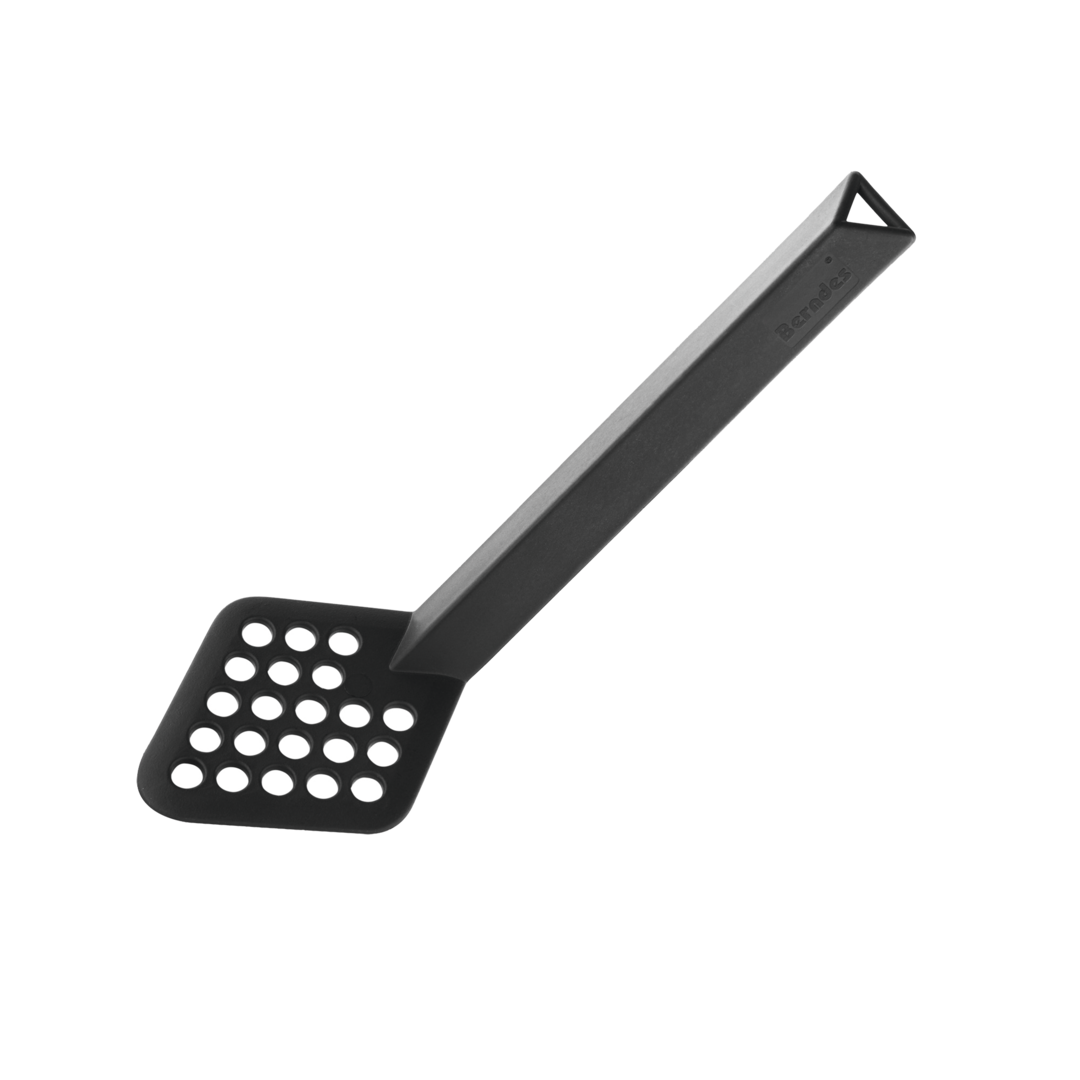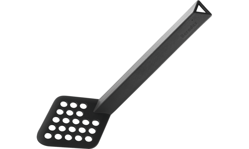 Durch die verkürzte Fläche kommt man einfacher unter das Bratgut.
