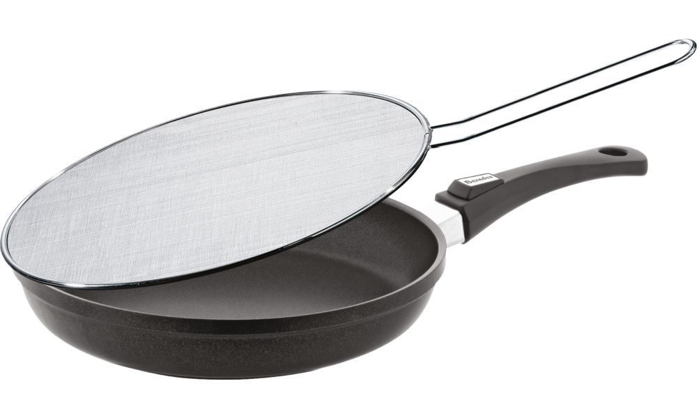Das Spritzschutzsieb aus hochwertigem Edelstahl ist mit ø ca. 29 cm universell einsetzbar für alle Pfannen bis zu einem ø von 28 cm.