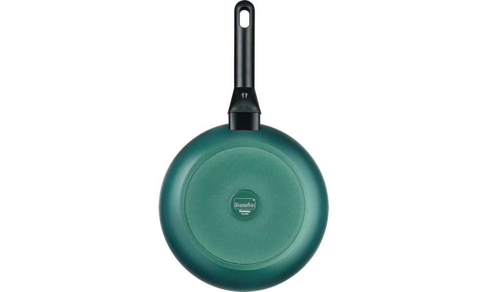 Mit Ferromagnetischem Induktions-Netzboden mit dunkelgrüner Versiegelung zum Schutz vor Oxidation. Mit praktischer Aufhängeöse am Stiel-Ende.