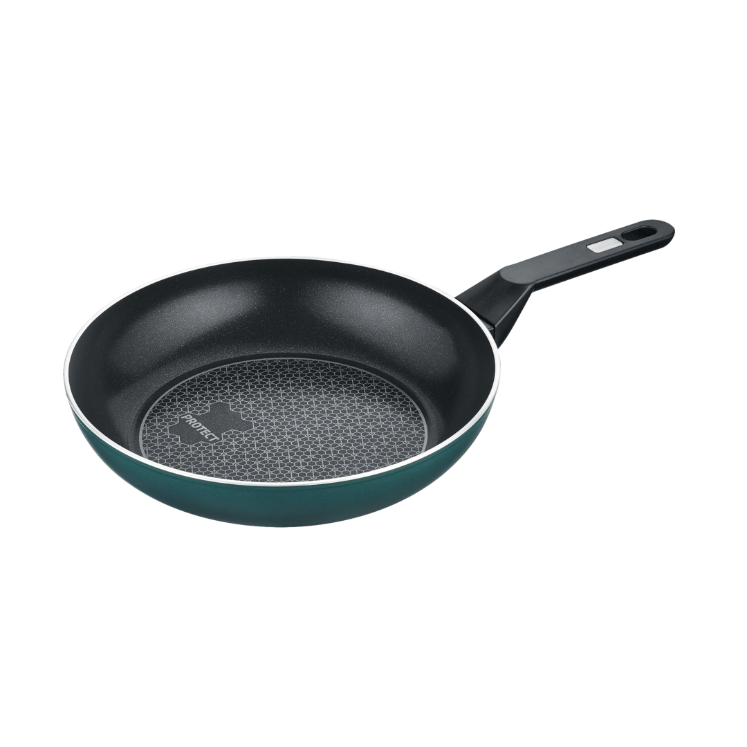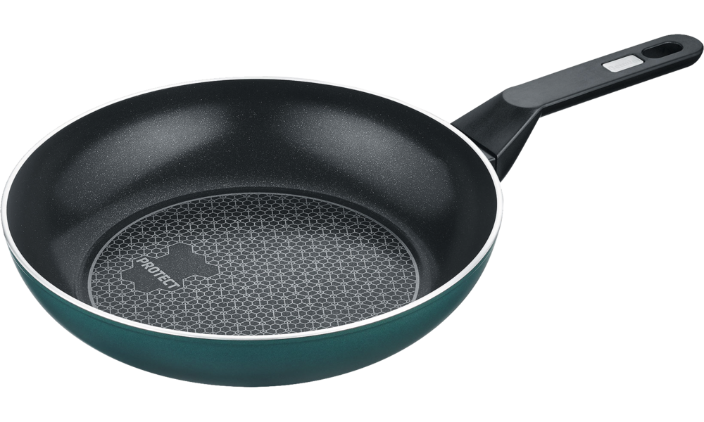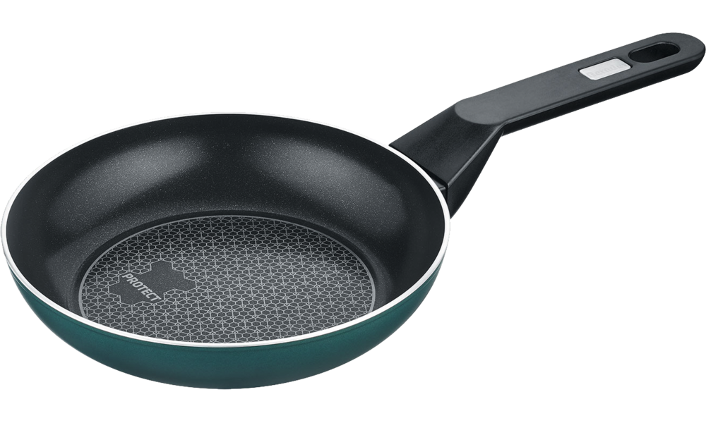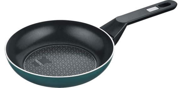 Die Bratpfanne Eco Recycle+ besteht aus 100 % recycelten Aluminium-Dosen und einem Kunststoff-Stiel mit Softtouch-Oberfläche.
