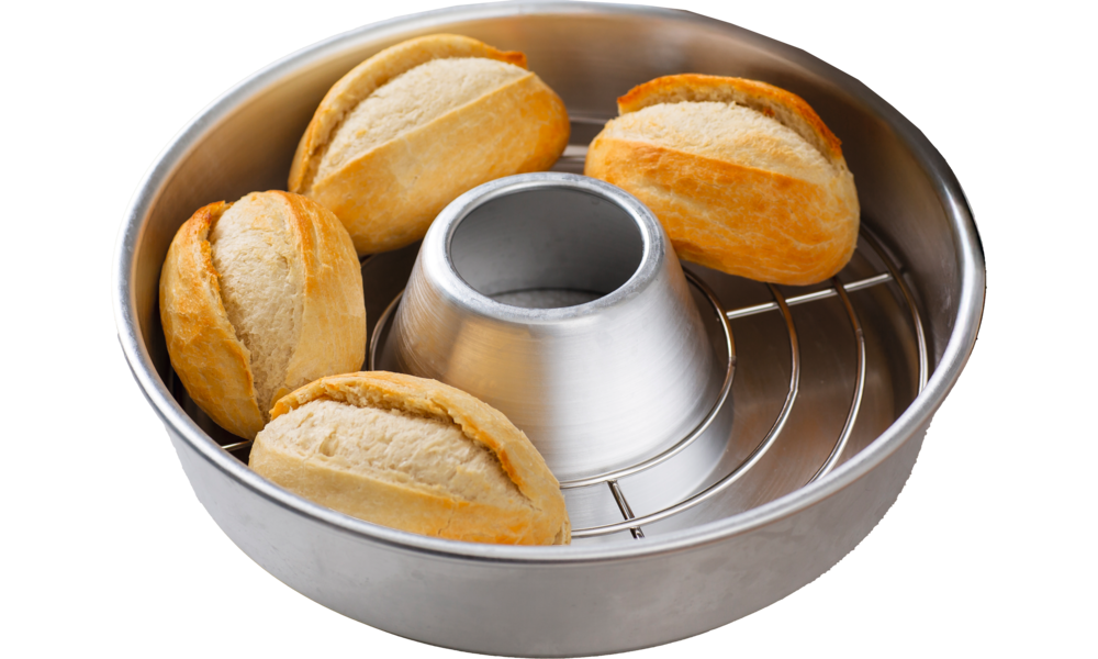 OMNIA Aufbackgitter. Ideal für Croissants und Brötchen. Gitter in den Ofen legen - und los geht es! Kann auch zum Gemüsedämpfen oder bei Kombinationsgerichten benutzt werden: Gemüse direkt in die Backform und oben das Aufbackgitter mit Fleisch oder Fisch. Aus hochwertigem Edelstahl.