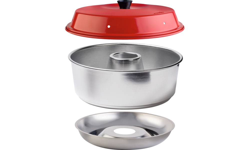 OMNIA Maxiform 3 l. Die OMNIA Maxiform ist um 50 % größer. Perfekt, wenn die übliche Form nicht ausreicht. In der OMNIA Maxiform können Sie bei den meisten der Rezepte das 1,5- bis 2-Fache der angegebenen Menge verwenden. Die Zubereitungszeiten bleiben gleich. Die Maxiform muss stets mit dem OMNIA Unterteil und dem Deckel verwendet werden. Verwenden Sie keine Lebensmittel mit hohem Säure- und/oder Salzgehalt. Nicht spülmaschinengeeignet.