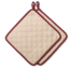 OMNIA Topflappen. Zwei stilvolle Topflappen, 24 x 24 cm, beige mit weinrotem Rand.
