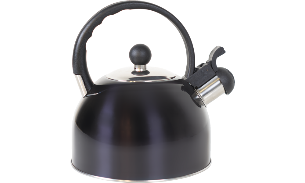 Tee Flötenkessel schwarz. Der aus Edelstahl bestehende Pfeifkessel ist geeignet für Gas-, Elektrik-, Keramik- und Induktionsherde. Er besitzt einen hitzebeständigen Griff und klappbaren Pfeifknopf, sowie eine große Öffnung, die das Befüllen und Reinigen des Kessels erleichtert.