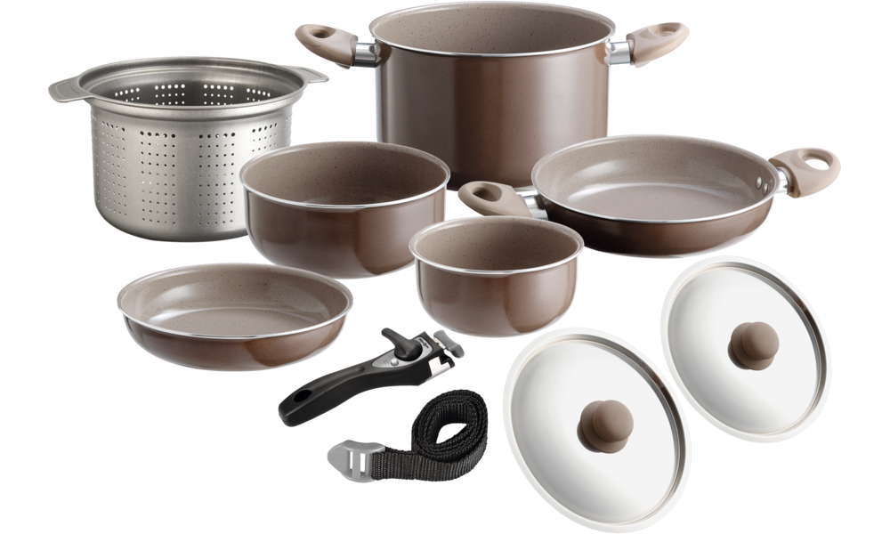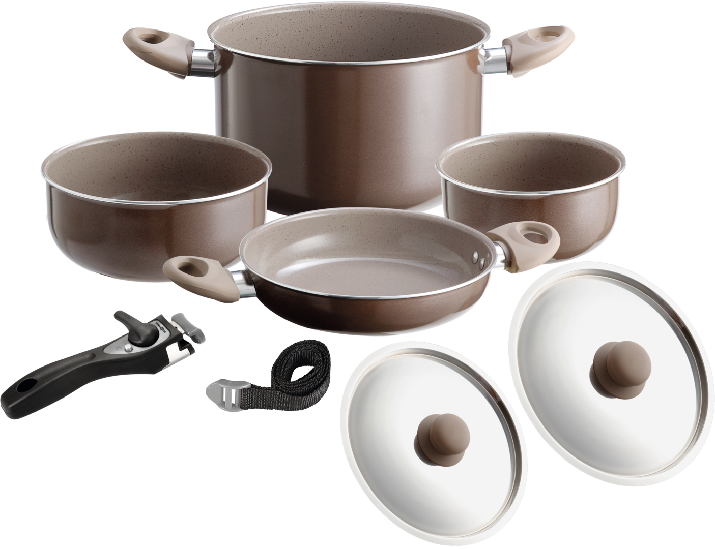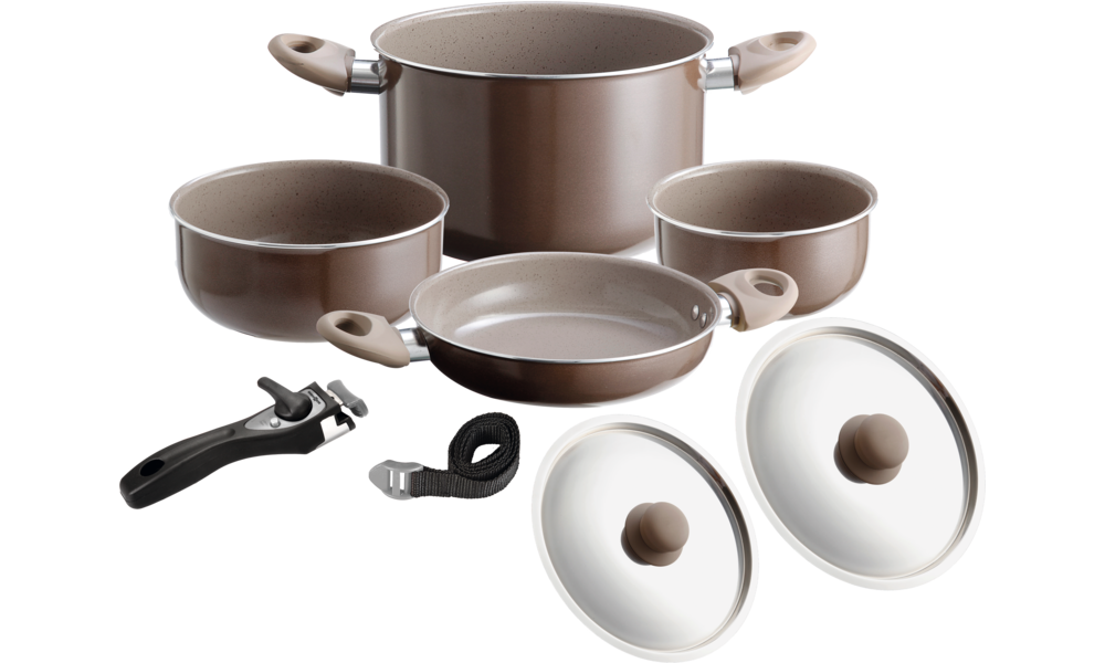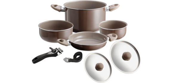 Aluminium-Kochtopfsets mit langlebiger 5-facher Antihaft-Beschichtung und hoher Kratzfestigkeit.