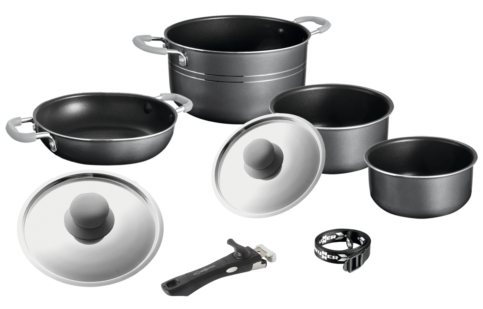 Diese vielseitigen Topfsets aus robustem Aluminium mit innovativer Antihaftbeschichtung sind die perfekten Begleiter für kulinarische Abenteuer.