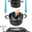 ø 24 cm, 1 Deckel ø 24/22/20 cm, 1 Griffzange und 1 Gurt.