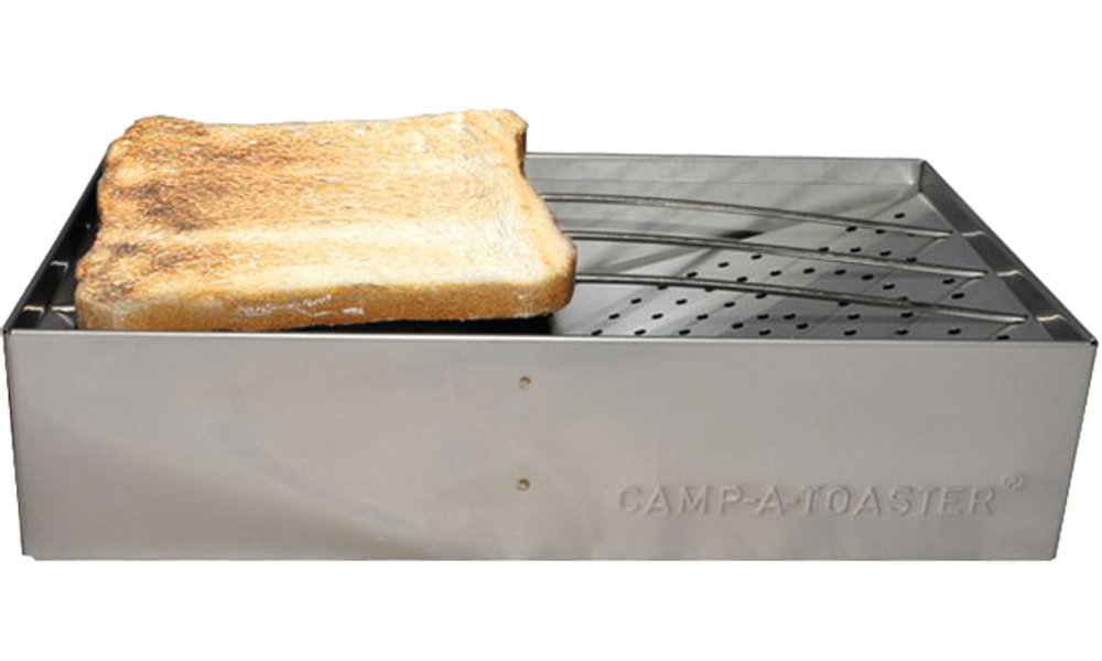 CAMP-A-TOASTER. Das Original - sorgt auch im Urlaub, weitab von Bäcker und Supermarkt, für frischen Toast und knusprige Brötchen. Einfach zentral auf eine Flamme stellen - fertig. Material Edelstahl.