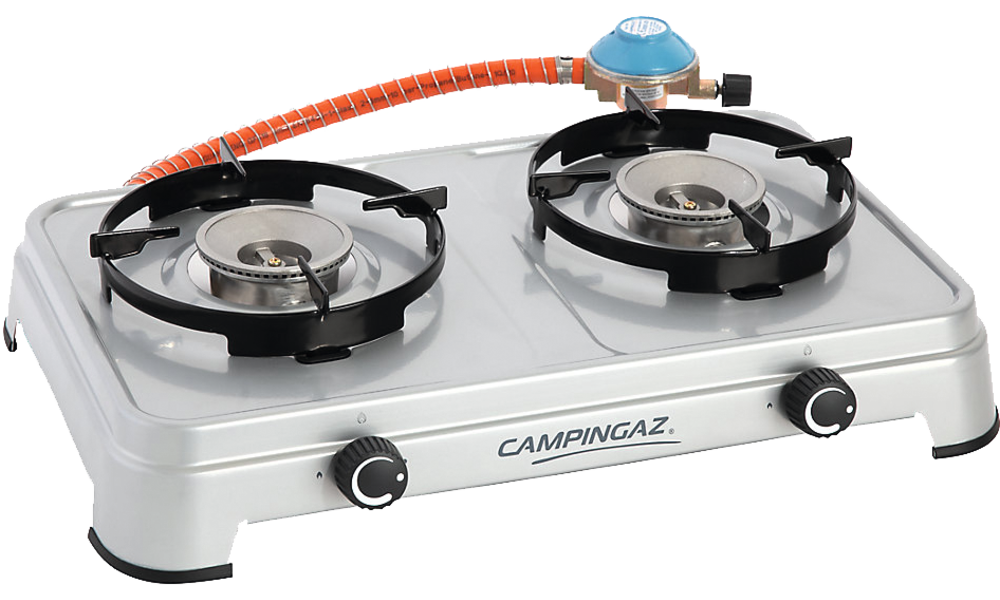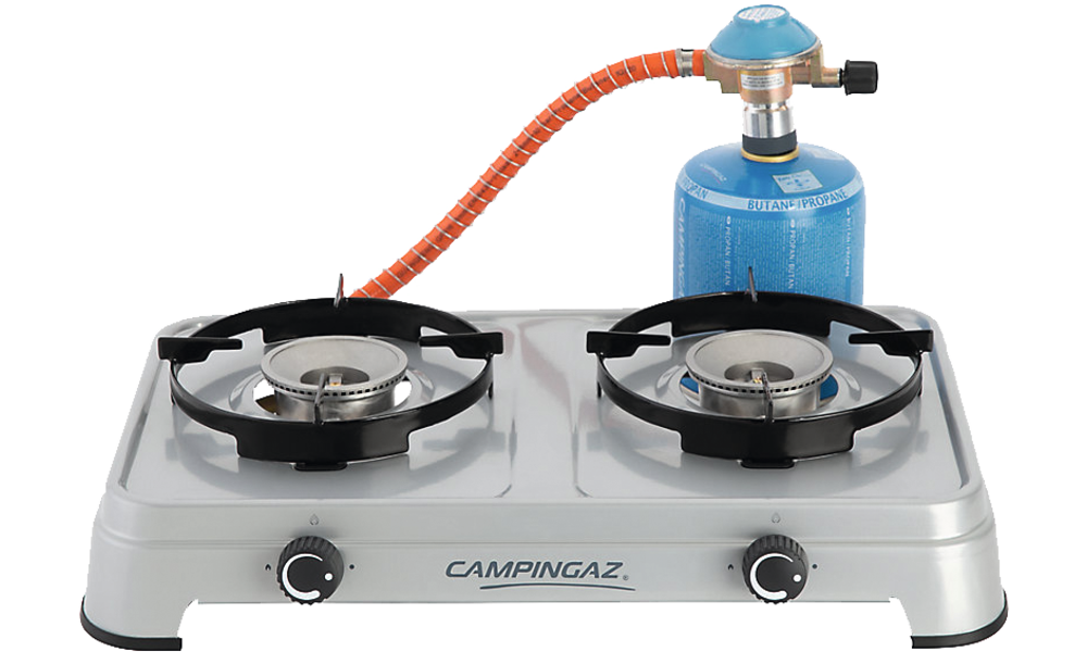 Camping Cook CV. Der Camping Cook ist ein tolles Einsteigermodell für jeden Camper. Der robuste Kocher bietet eine exzellente Leistung und Portabilität. Da der Schlauch und Regler bereits fest montiert sind, entfällt ein lästiges und umständliches Aufbauen. Es muss lediglich die Easy-Click® Plus Kartusche angeschlossen werden. Die beiden 1.800 W starken Brenner sind unabhängig voneinander regulierbar. Die beiden herausnehmbaren Topfträger sind spülmaschinengeeignet. Mit manueller Zündung. Lieferumfang inklusive Schlauch und Regler für CV-Kartusche. Leistung 2 x 1.800 W. Gasverbrauch 261 g/h.