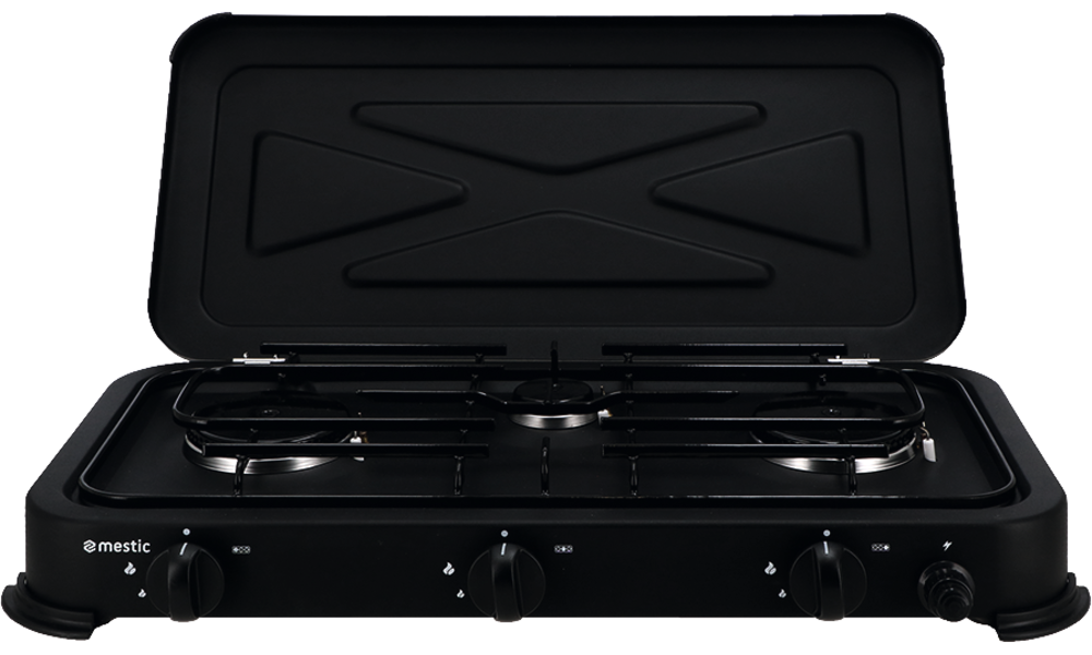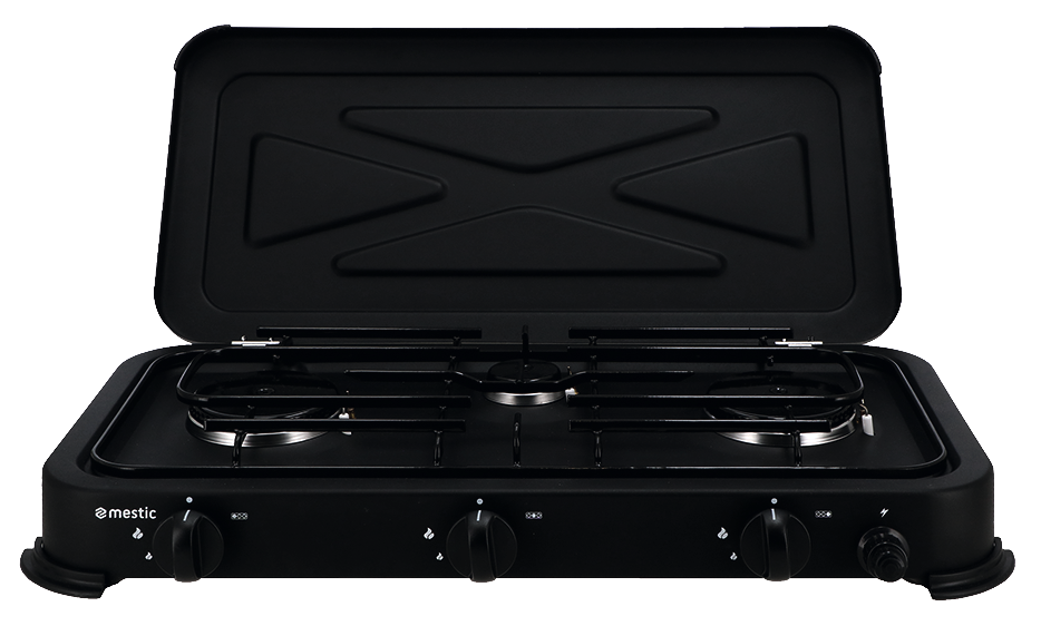 3 Brenner. Leistung 1 x 0,85 kW + 2 x 2,2 kW. Gasverbrauch 382 g/h.