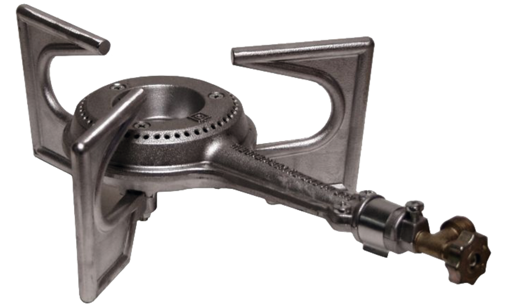 Hocker-Kocher HK1230. Alu-Gußausführung. Der ultraleichte, leistungsstarke und robuste Kocher ausgestattet mit Regler 50 mbar und Anschlussschlauch 150 cm. Leistung 4,2 kW. Ohne Zündsicherung.
