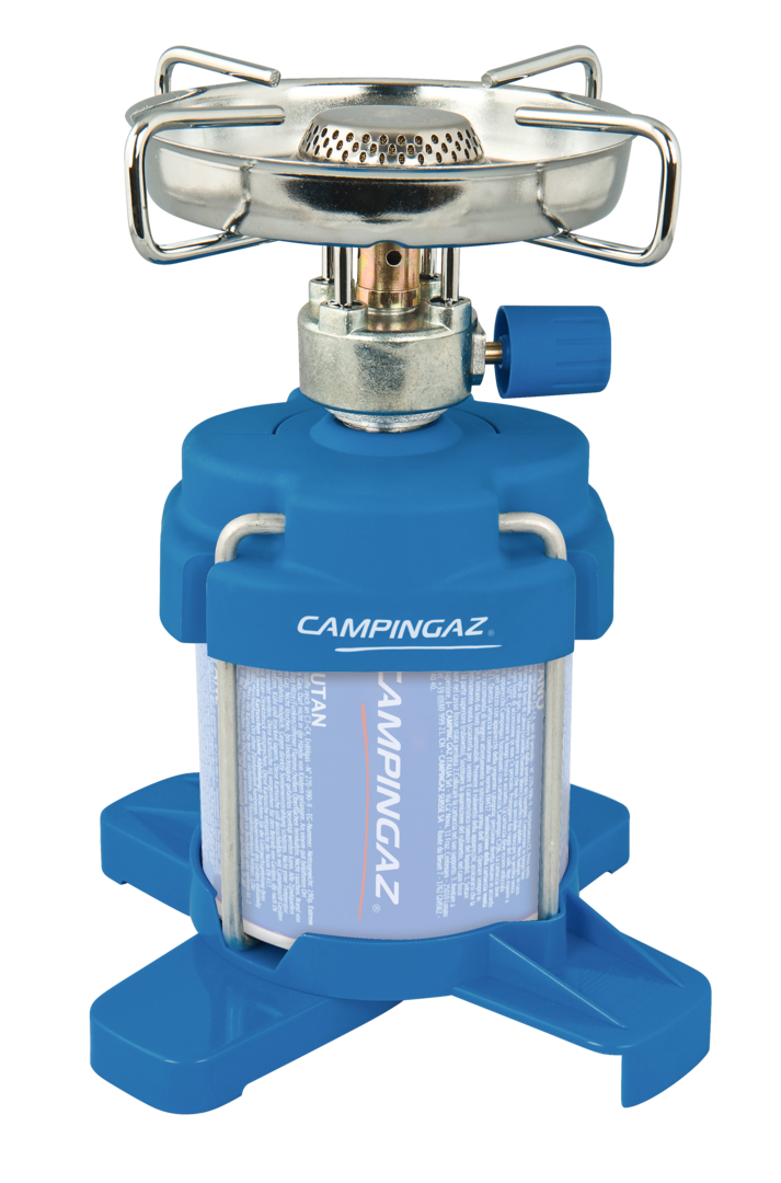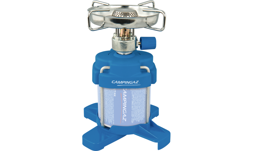 Kocher Bleuet® 206 Plus. Die moderne Version des berühmten Kochers Bleuet®. Mit Fuß, vier ausklappbaren Topfträgern und integriertem Windschutz. Leistung 1.250 W. Verbrauch 90 g/h. Brenndauer 2 h (C206 GLS).