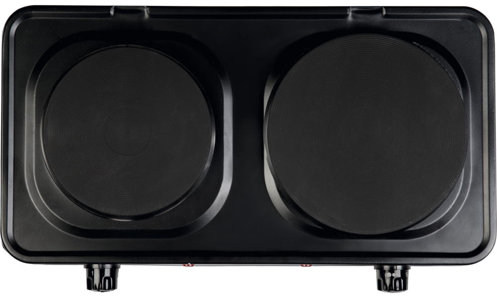 Elektrische Kochplatten mit einstellbarem Thermostat, hitzbeständigem Gehäuse, Überhitzungsschutz, roter Kontrollleuchte und Anti-Rutsch-Füßen.