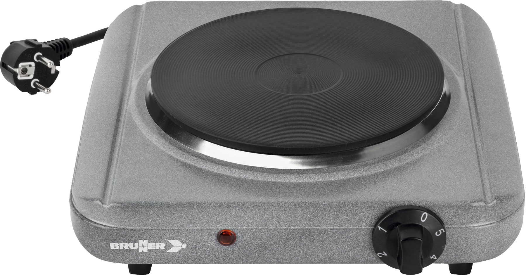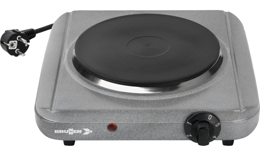 Kochplatte HOT POINT. Elektrische Einzelkochplatte (ø 18,5 cm) mit stabilem pulverbeschichtetem Metallgehäuse und 6 einstellbaren Temperaturstufen. Anschlussspannung 230 V. Leistung 750 W.