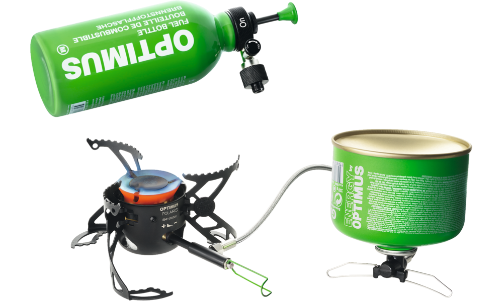 Optimus Polaris Optifuel. Mit diesem vielseitigen und preisgekrönten Optimus Polaris Optifuel Kocher erwartet Sie ein Multitalent, das mit fast jedem Brennstoff (Gas, Reinbenzin, Petroleum, Diesel oder Kerosin) läuft und so jederzeit, an jedem Ort und bei jedem Wetter eine warme Mahlzeit liefert. Dafür sorgt ein überragender, verlässlicher Brenner, bei dem unterwegs weder Düse noch Zubehör getauscht werden müssen. Benutzt man LPG-Gaskartuschen, muss lediglich zwischen dem 4-Saison-Modus bei Kälte oder dem Brennsparmodus gewählt werden. Mit der integrierten magnetischen Reinigungsnadel erfolgt die Reinigung der Düse schnell und einfach während des Kochens.