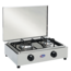 Luxus-Edelstahl-Gaskocher 2-flammig. Mit Zündsicherung. Leistung 4 kW (Brenner 2,5 kW und 1,5 kW). Betriebsdruck 50 mbar.