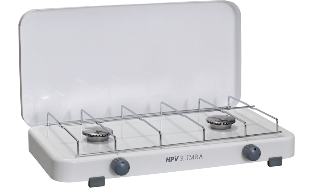 Hochwertiger Gaskocher mit zwei stufenlos regelbaren Brennstellen.