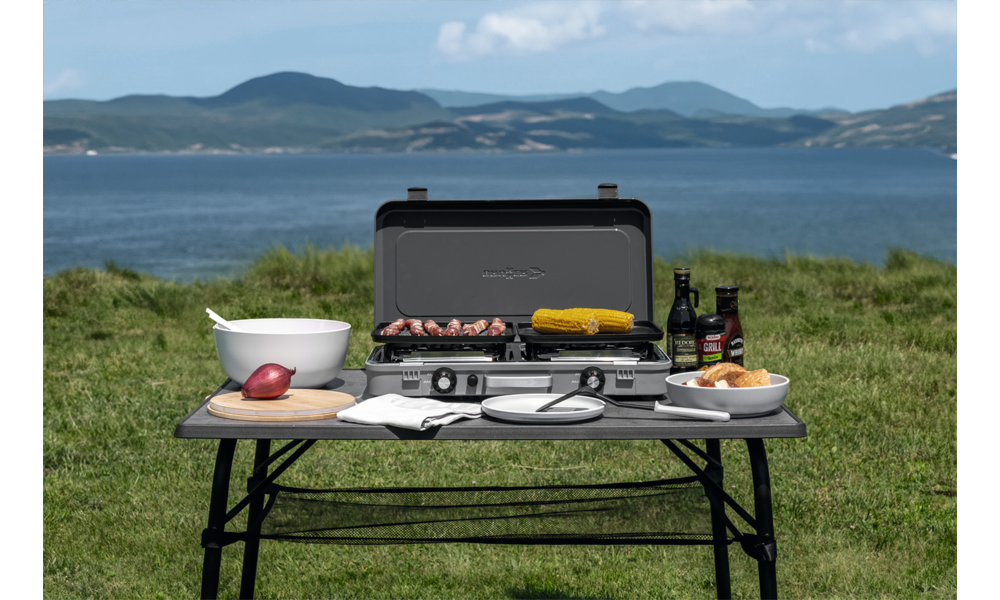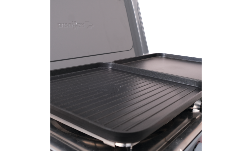 Dieser 2-flammige Kocher mit seiner eleganten Edelstahl-Kochfläche verbindet Funktionalität mit Stil. Mit seiner piezoelektrischen Zündung lässt sich der Kocher mühelos einschalten. Der Kocher ist mit einem praktischen Deckel und Griff für den einfachen Transport ausgestattet und eignet sich perfekt für Outdoor-Abenteuer oder als zuverlässiges Backup für zu Hause. Der Devil Kookmaster GP wird mit einer glatten und einer geriffelten Grillplatte geliefert. Leistung 2 x 2,4 kW.